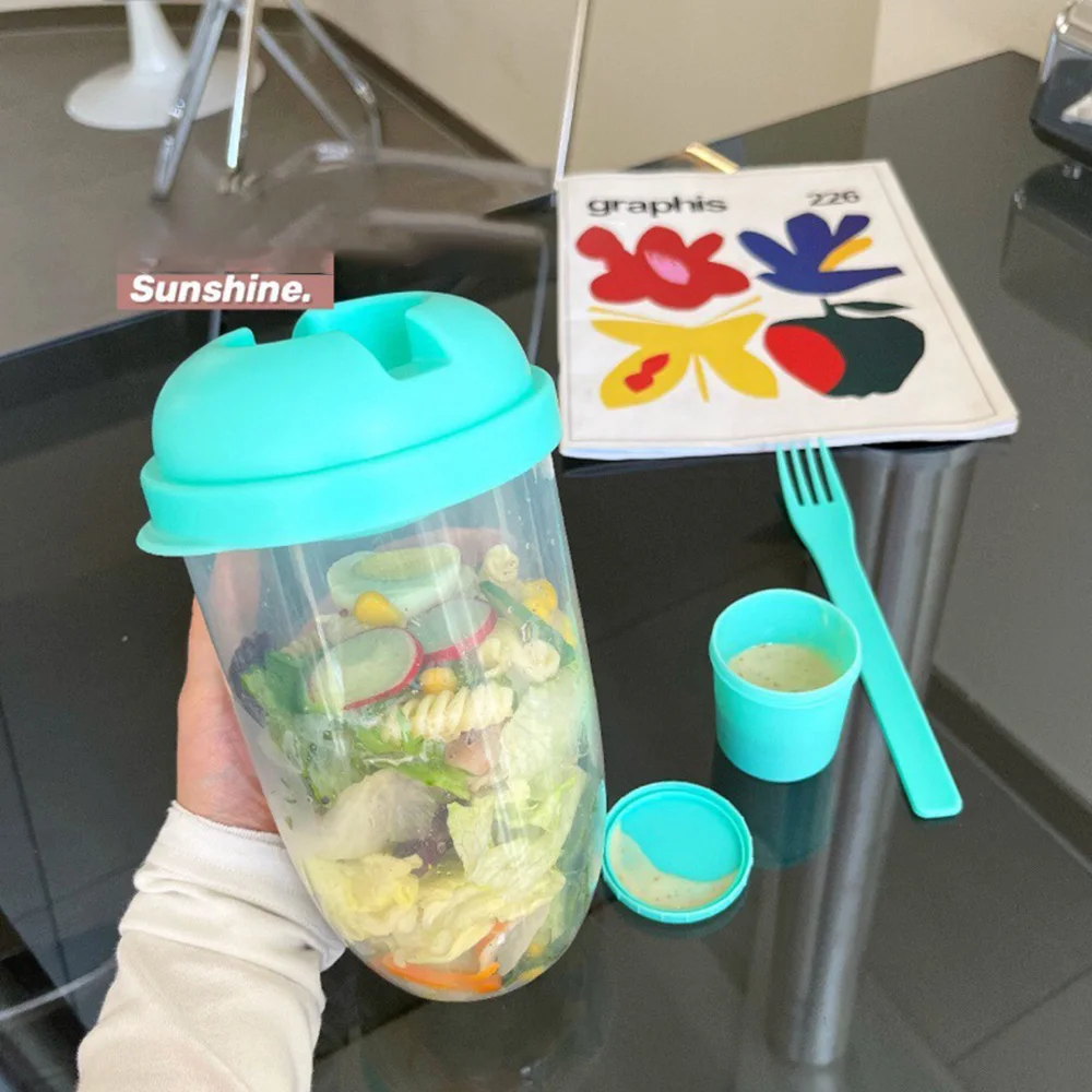 3 reviews for 1PC White/Green Portable Bottle Salad Shaker Fresh Fruit and Vegetable Salad Glass With Fork Salad Bowl Holder for Lunch Bento