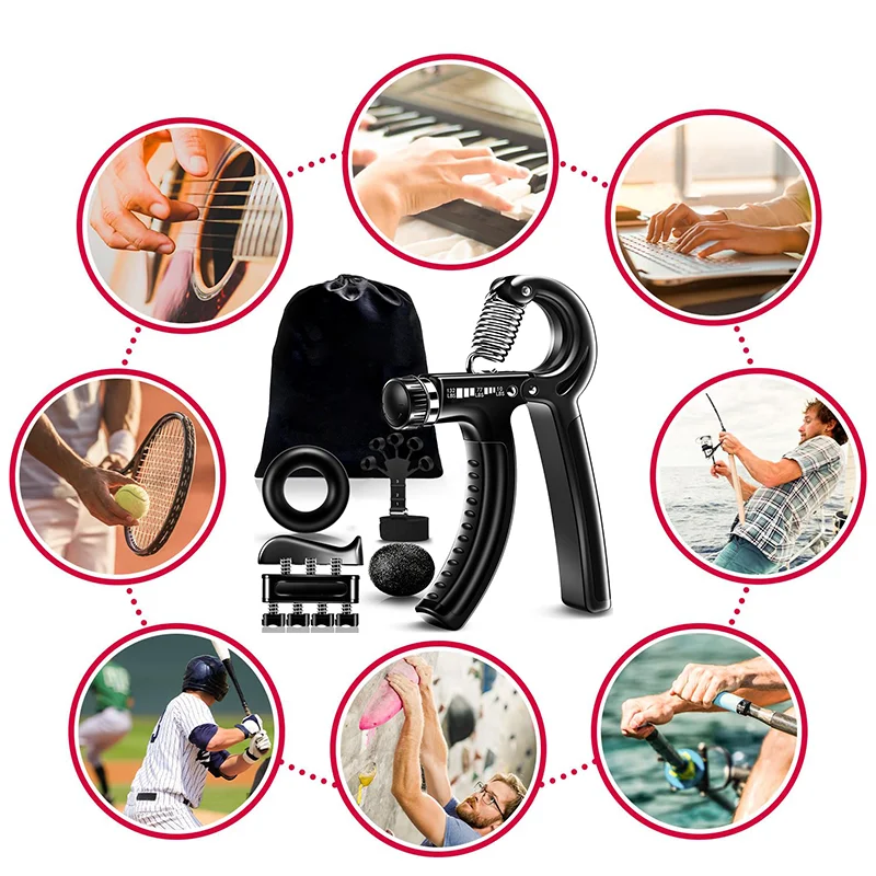 Adjustable Hand Gripper Kit (5-in-1) – Forearm & Finger Exercise, Stress Relief Ball, Portable Home Gym for Athletes