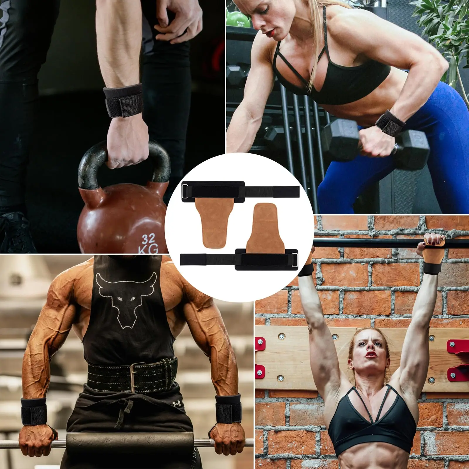 Cowhide Gym Gloves Grips Palm Guards Palm Protector Weight Power Belt Lifting Pads Fitness Training Weightlifting Gymnastics