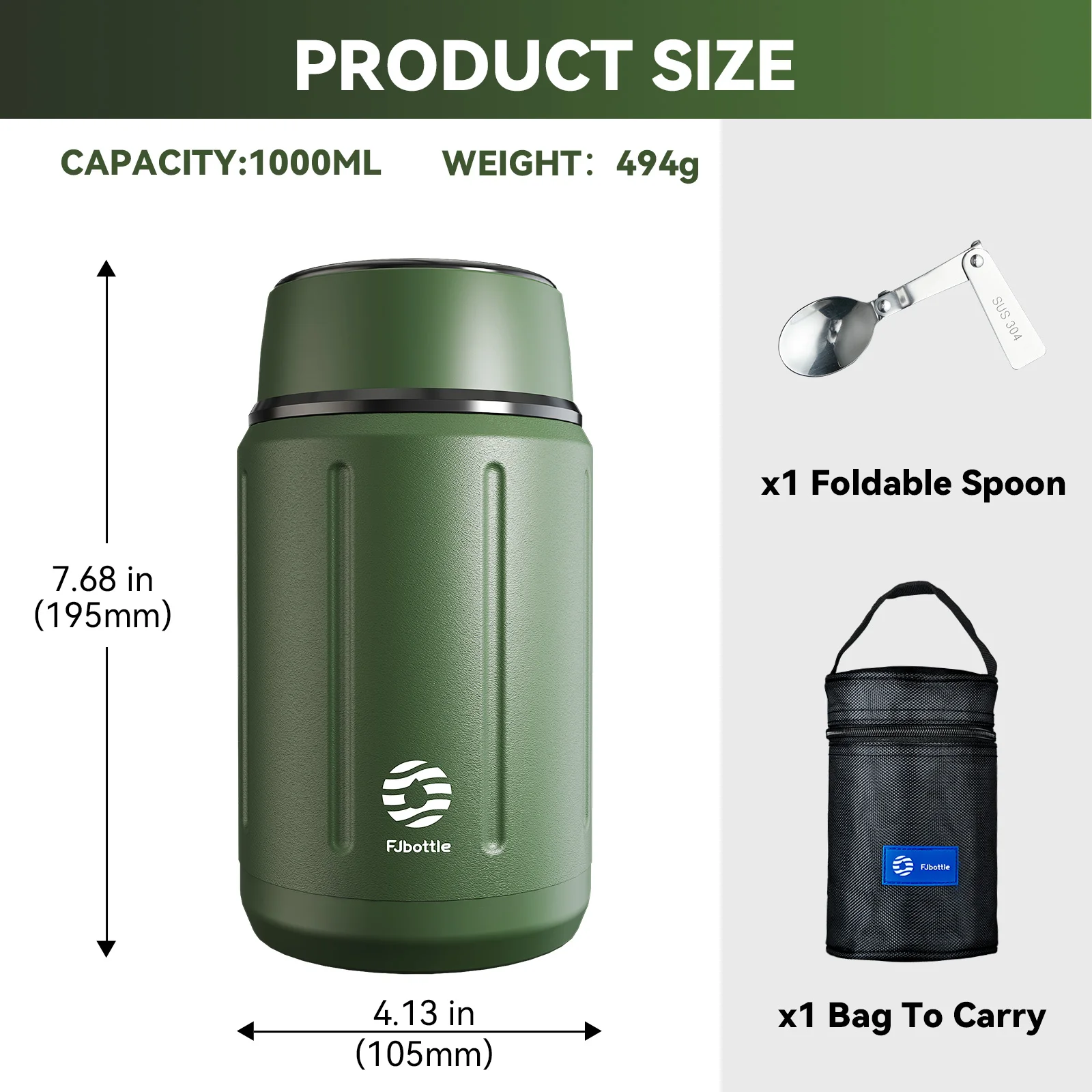 Fjbottle lunch box Stainless Steel Food containers with bag Thermal lunch box Free Spoon 1000ml