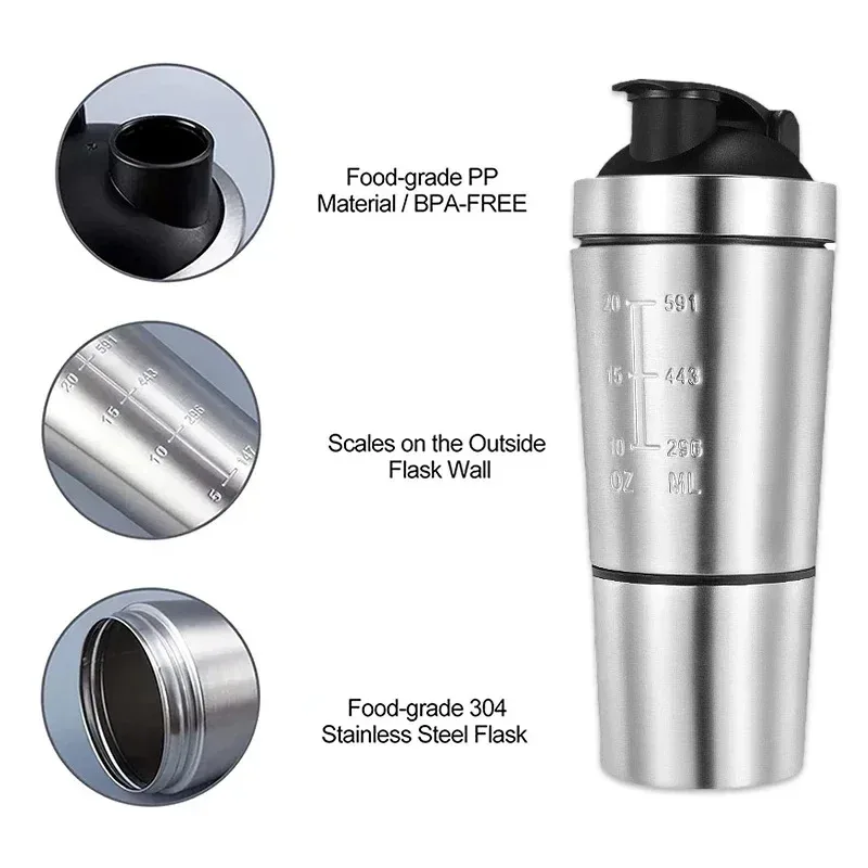 Kitchen Portable Fitness Mug Nutrition Shakers Cup Water Bottles Protein Shaker Bottle Premium Stainless Steel Shaker Bottle