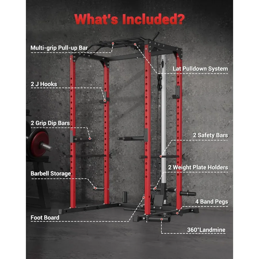 Power Cage Power Racks for Home Gym with Pulley System 1200LBS Weight Capacity MultiFunctional Squat Rack for Strength Workout