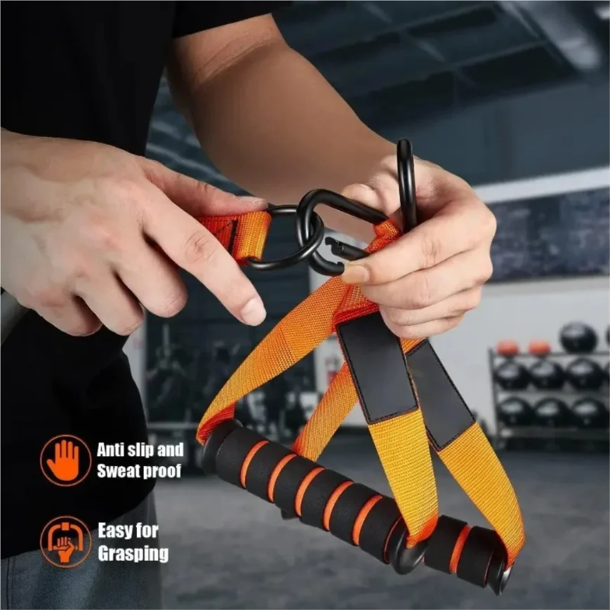 Resistance strap with handle: used for muscle training, strength building yoga body shaping home fitness equipment – natural