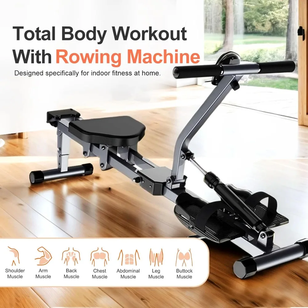 Rowing Machine, Compact Adjustable Rowing Machine 12 Levels of Complete Body Workout Resistance for Home, Low-Impact